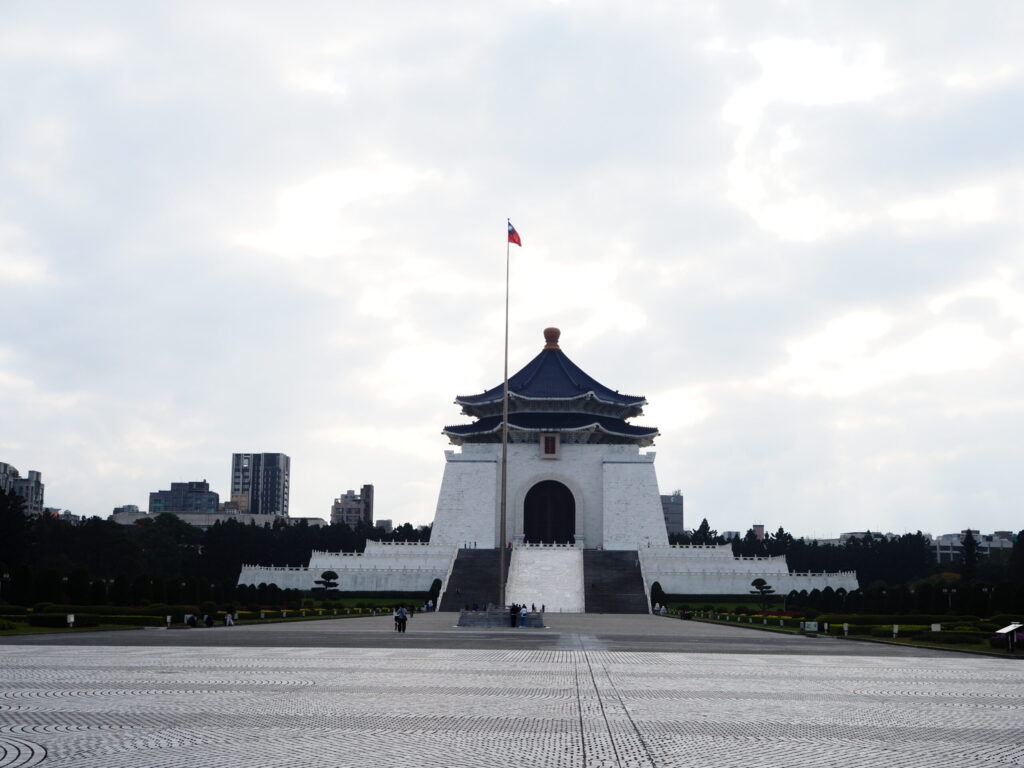 朝は、台北観光の定番スポット 中正紀念堂 からスタート。白い外観が印象的な巨大建築で、台湾の歴史や文化を感じられる場所です。