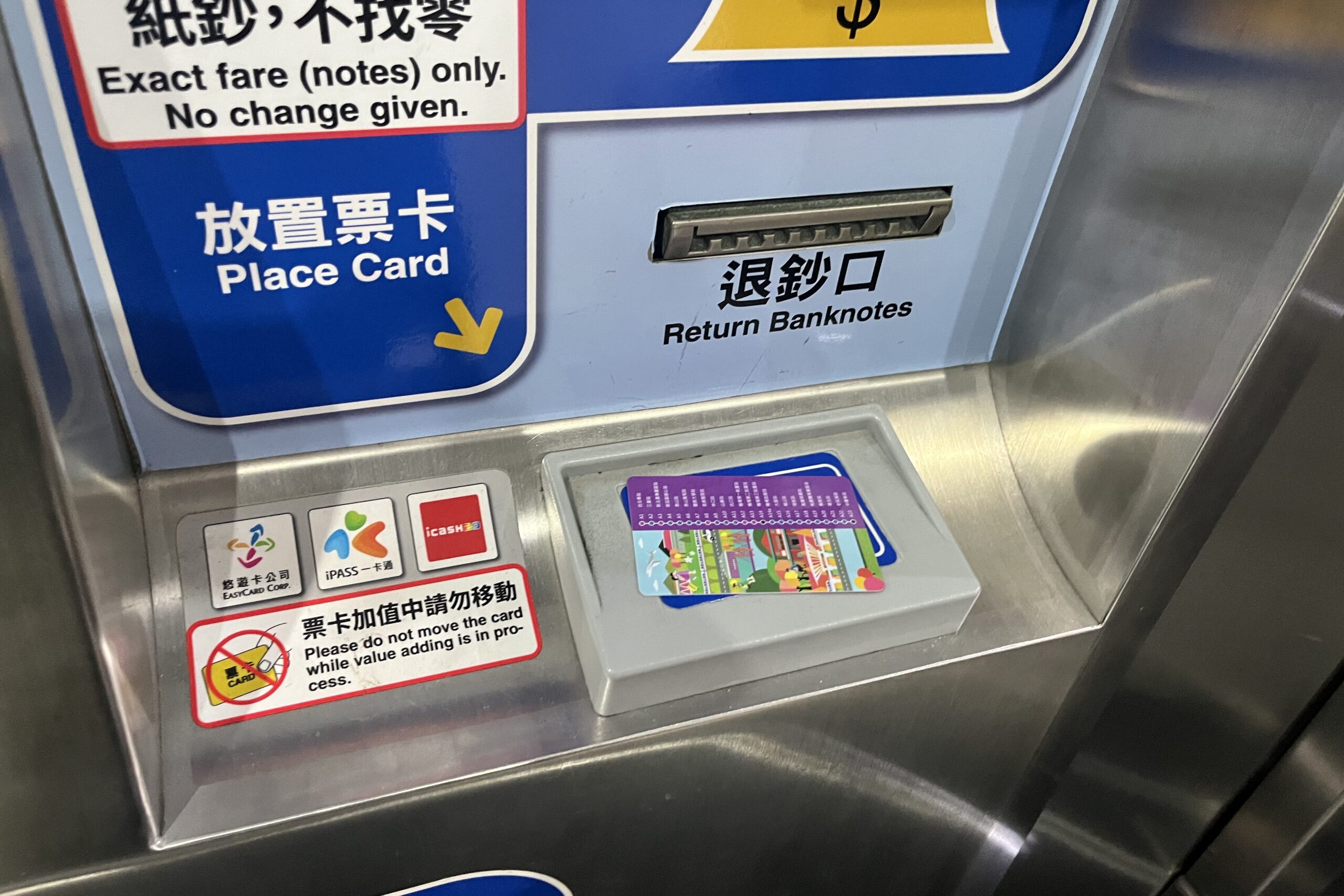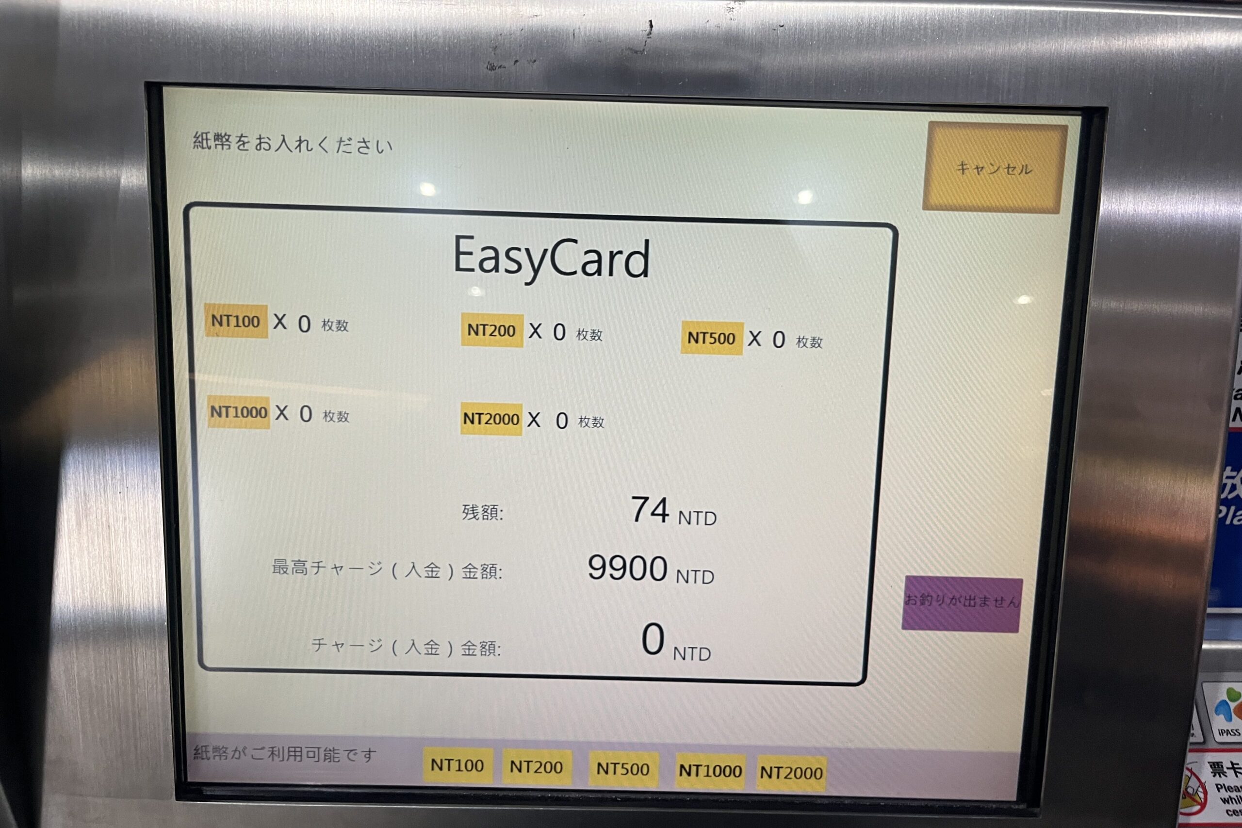MRT駅のチャージ機は紙幣のみ対応で、おつりは出ません。